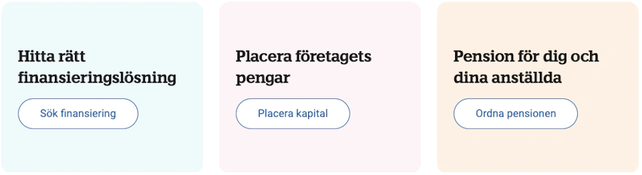 Nordea tar gärna ett helhetsgrepp om företagets ekonomi och du kan få hjälp att förvalta ditt företags pengar genom att låta deras förvaltare placera pengarna utifrån din valda riskprofil och avkastningsmål. Kikar du runt efter företagskort så har de olika alternativ för detta också. Läs mer om Nordeas företagstjänster.